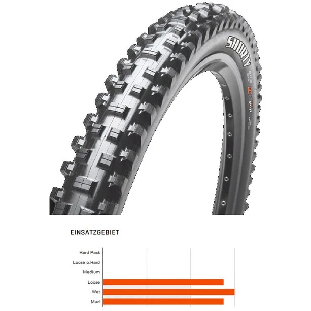 Les parcours World Cup sont des courses de plus en plus techniques et escarpées. Les professionnels étaient à la recherche d’un pneu à crampons médians capable de maîtriser les courbes sèches et les virages larges ou serrés et prêt à supporter un peu de boue. C’est pour eux que le Shorty a été créé. Avec sa carcasse à double pli de grand volume, il est plus polyvalent que les pneus WetScream spécifiques aux terrains boueux. De grands crampons latéraux hauts et légèrement décalés pénètrent le sol meuble et permettent une bonne adhérence dans les courbes, même à grande vitesse. Au centre, deux types de crampons alternent : des crampons rectangulaires et des crampons carrés qui permettent un excellent grip lors du freinage et d’excellentes propriétés d’auto-nettoyage.