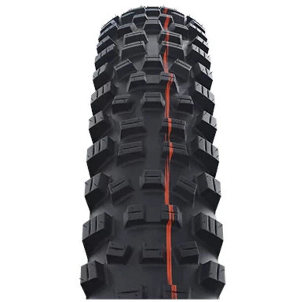 Les flancs du pneu sont plus stables. La bande de roulement est plus souple. Le pneu est plus léger. En un mot : La stabilité en descente au poids de l’Enduro !
